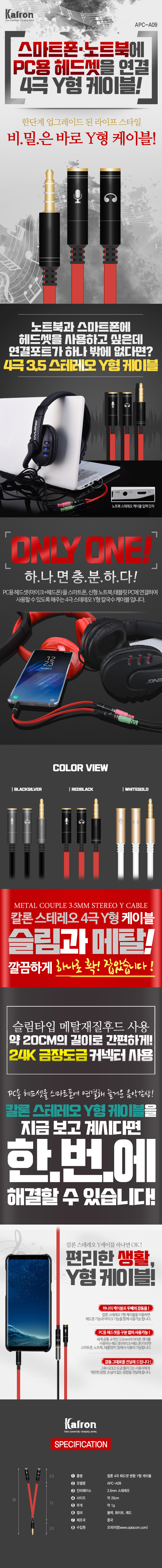 칼론 APC-A09 4극 헤드셋 변환 Y형 케이블